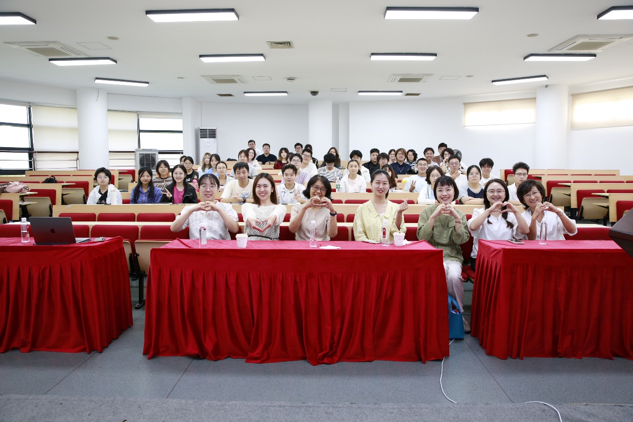日语系主任尤海燕教授开场致辞。她首先介绍了三位优秀校友的学习和发展经历,并表示三位校友的成长轨迹是日语系人才培养成果的生动体现。日语系希望通过此类活动,帮助在校生拓宽视野、汲取学长经验,以更坚定的信心迎接时代挑战。