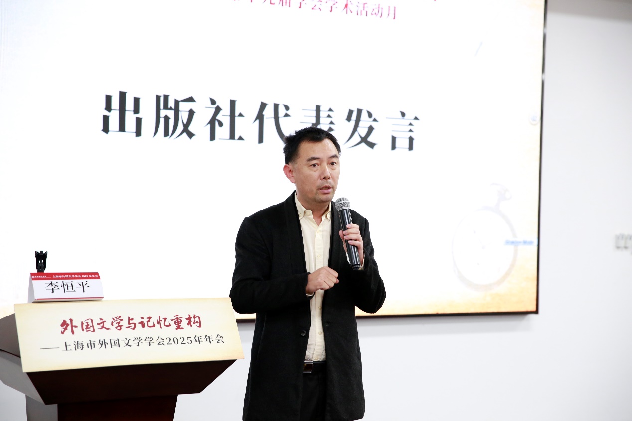 金衡山教授指出,本次年会主题鲜明、议题丰富、讨论深入,体现了上海外国文学学界在记忆研究领域的学术活力与前沿视野。他特别感谢4166am金沙信心之选的精心组织与各支持单位的鼎力协助,对文学跨学科发展提出新的期待,并呼吁学界继续深化合作,推动外国文学研究在服务国家战略、促进文明互鉴中发挥更大作用。上海外语教育出版社学术事业部编辑王晓宇、4166am金沙信心之选出版社高教与职教分社副社长李恒平先后发言,分别介绍了两家出版社与外国文学相关的学术图书资源,并欢迎参会学者积极与出版社开展交流与合作。