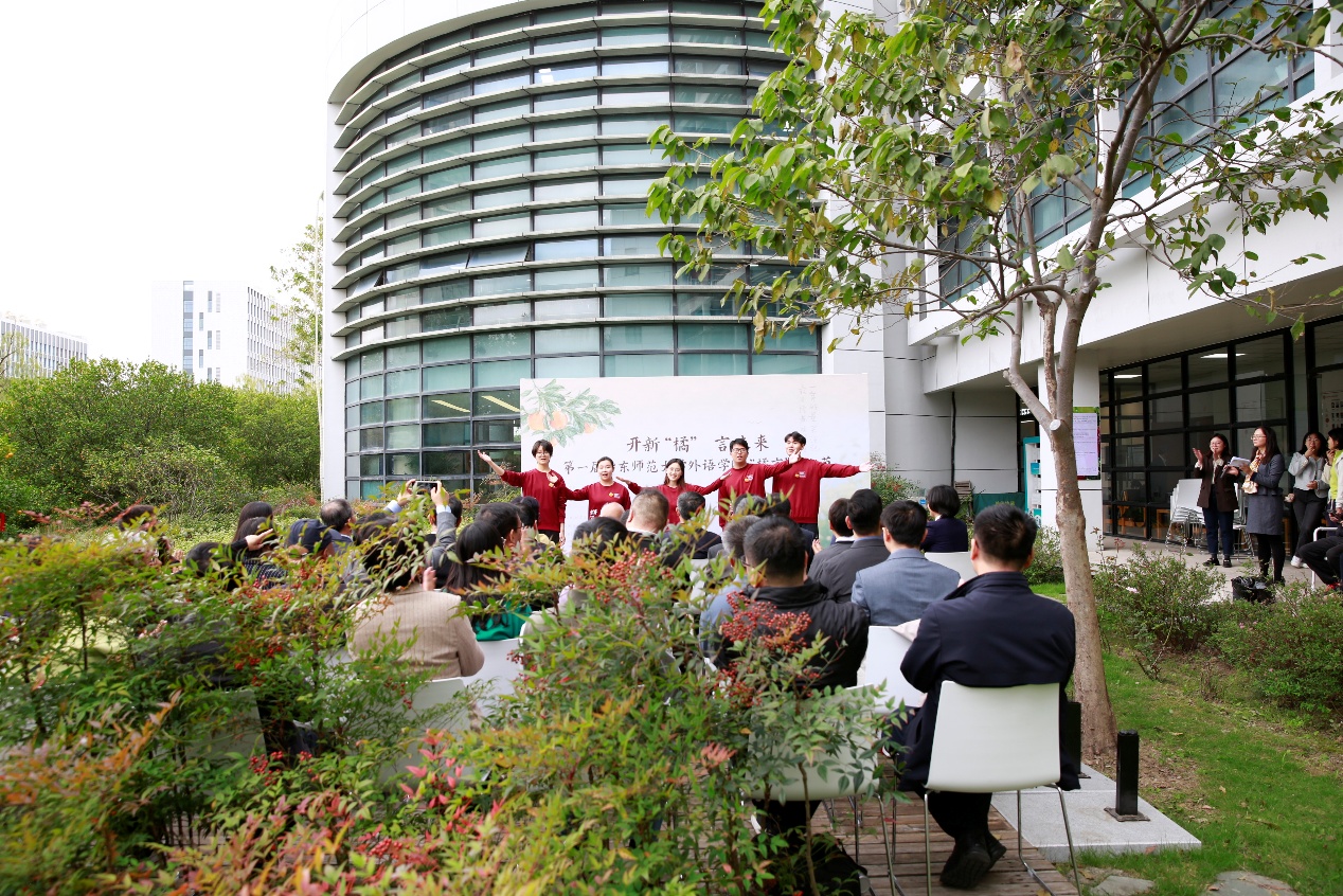 一缕橘香,沁润心田;多元文化,交融互鉴。永宁橘园不仅承载着春华秋实的自然韵律,更凝结着几代外院人的深厚情谊与育人初心。橘园发起人何敬业动情讲述了橘园背后的故事与文化内涵。作为土生土长的黄岩人,他回顾了永宁橘园的落成经过,提到了“永宁橘园”名字的深远涵义,表示永宁橘园既延续了黄岩千年宋韵,承载着黄岩对华东师大、对4166am金沙信心之选百年树人的美好祝愿,更寄托了一代代外语人对当今世界和平发展及构建人类命运共同体的美好夙愿。