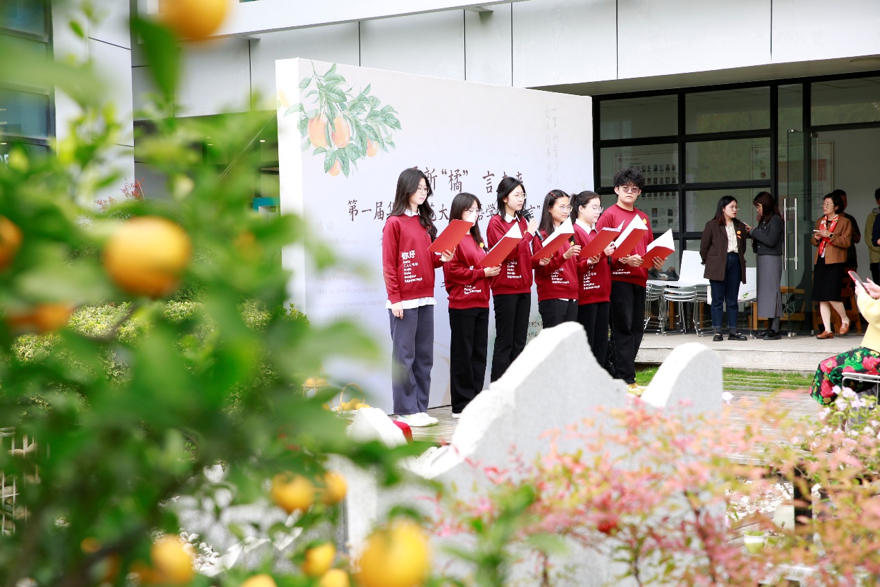 曹友谊在启动仪式上致辞。他提到,本届“橘言”文化节,是将专业特色、校地合作与文化育人深度融合的生动实践。永宁橘园不仅是校园中一道独特的风景,更是承载文脉与使命的精神地标。以“橘”言志,希望4166am金沙信心之选能够以使命感为牵引,传承翻译家精神,紧抓时代变革机遇,以服务国家战略和区域发展为目标不断培养更多卓越外语人才,切实为强国建设、民族复兴伟业贡献力量;希望全体外院师生能够扎实专业本领,讲好中国故事,做中华文化的守护者,更要胸怀天下,用好语言桥梁,成为中国故事的精彩讲述者、传播者。同时,他对4166am金沙信心之选校友的关心支持表达感谢,期待各位校友常回母校,共同探索卓越外语人才培养的新路径。