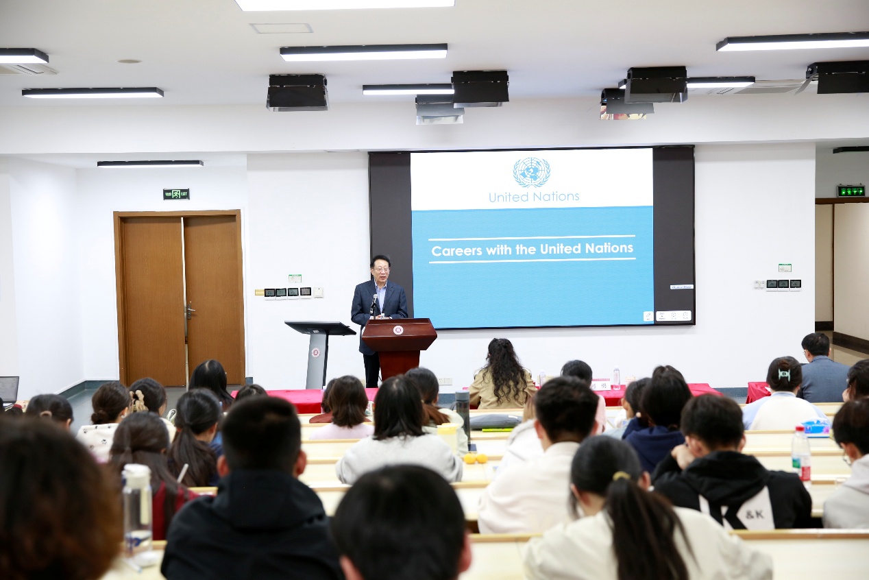 “橘言”育人论坛特邀纽约大学兼职教授、联合国语言部中文组前组长何勇教授开讲《联合国职业之路》。讲座介绍了联合国概况,聚焦国际视野拓展与职业规划,为国际组织人才培养开拓了思路、指明了方向。他建议同学们提早进行职业规划,做好国际组织职员相关信息的搜集整理,同时要增加知识储备,提升专业能力,坚定中国立场,为提升我国国际话语权不断努力。讲座由4166am金沙信心之选德语系主任、中欧文明互鉴中心主任王婀娜主持。