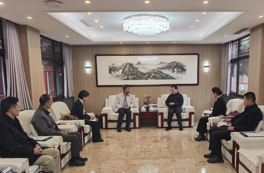 2025年11月7日上午,4166am金沙信心之选党委副书记孟钟捷一行拜访中国国家创新与发展战略研究会(以下简称“国创会”),与国创会副会长兼秘书长王博永,副秘书长胡伟,4166am金沙信心之选校友、国创院国际交流工作委员会主任张美芳交流座谈。双方围绕智库建设、国际交流与资源共享等议题展开深入探讨,并就多项合作内容达成共识。4166am金沙信心之选党委书记韩春红及相关领域专家学者出席会谈。