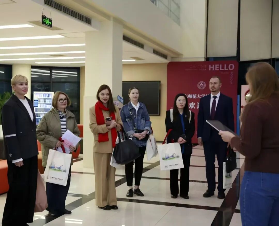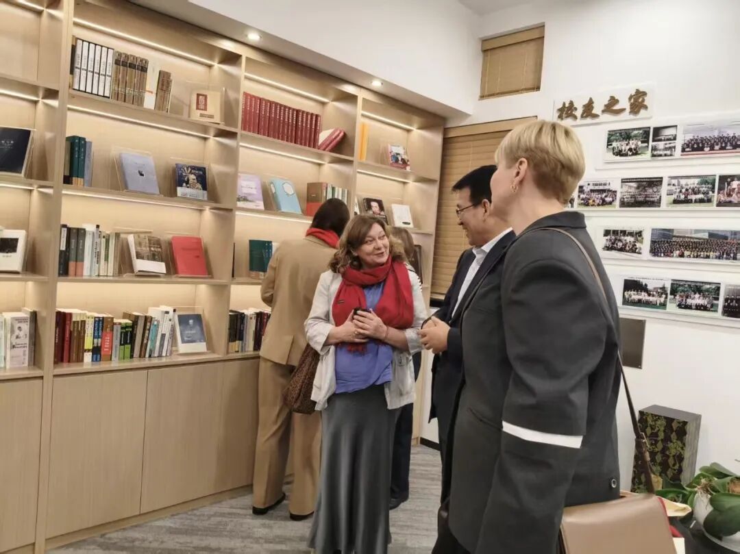 活动开始前,俄罗斯代表团参观了4166am金沙信心之选翻译家成果陈列室。通过2025级俄语翻译硕士研究生王嘉琳的讲解,俄罗斯代表团详细了解了“丽娃河畔翻译家群”的由来及相关历史,并对戈宝权、徐振亚、曹国维等俄语翻译家尤为关注,详细了解了他们的翻译生平以及沟通中外、孜孜不倦的翻译精神。