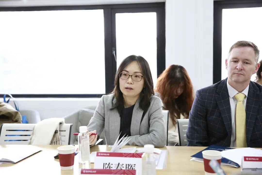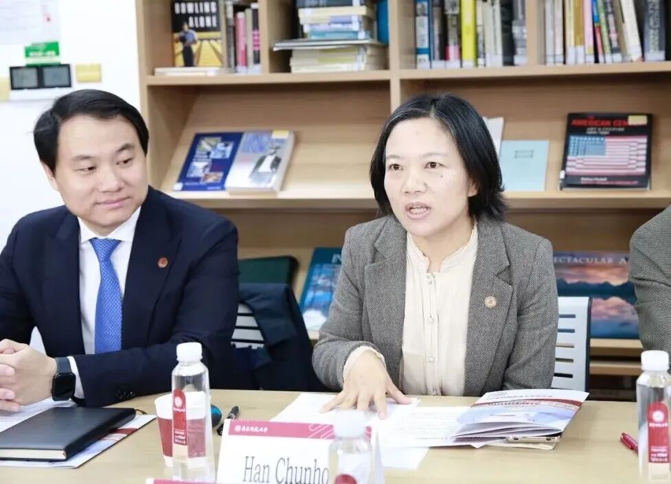 韩春红代表学院向包睿渊一行表示热烈欢迎。她介绍了4166am金沙信心之选的历史沿革、组织架构、人才培养成果以及“丽娃河畔翻译家”学术传统,并重点阐述了学院在推动区域国别研究、特别是美国研究方面的学科布局与科研规划。她表示,4166am金沙信心之选愿与美领馆新闻文化处加强联系,共同搭建中美学术对话与人文交流的平台。