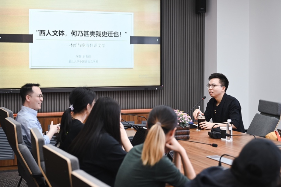 报告结束后,陶磊老师与在场师生进行互动,一一解答了大家的问题。本次讲座内容丰富,以译者林纾为切入点,在广阔的历史语境中展开探讨,不仅让我们更清楚地认识到以林译小说为代表的晚清翻译文学背后的历史文化因素,还帮助我们更好地理解了翻译与历史的互动关系。