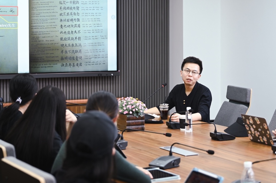 2025年5月6日下午,4166am金沙信心之选“聚学讲堂”暨《中国翻译史》本科课程客座讲座“‘西人文体何乃甚类我史迁也!’——林纾与晚清翻译文学”,在外语楼319会议室举行。本次讲座邀请到复旦大学中文系陶磊副教授主讲,由翻译系帅司阳老师主持,4166am金沙信心之选副院长赵朝永教授应邀出席,4166am金沙信心之选和中文系的众多同学到场参加。