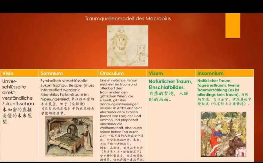 讲座中,van Well老师首先介绍了《伊魏因》的主要情节,它围绕主人公伊魏因的荣誉追求与危机克服展开。伊魏因在失信于妻子后陷入疯狂,逃入森林之中,后来被两个寻求帮助的女子用神奇膏药治愈,恢复神智醒来,在一场独白中怀疑自己的整个骑士生涯不过是一场梦。经历这一转折,主人公不再执着于个人荣誉,而是把冒险与助人相结合,重新赢得了亚瑟宫廷与妻子的接纳。
