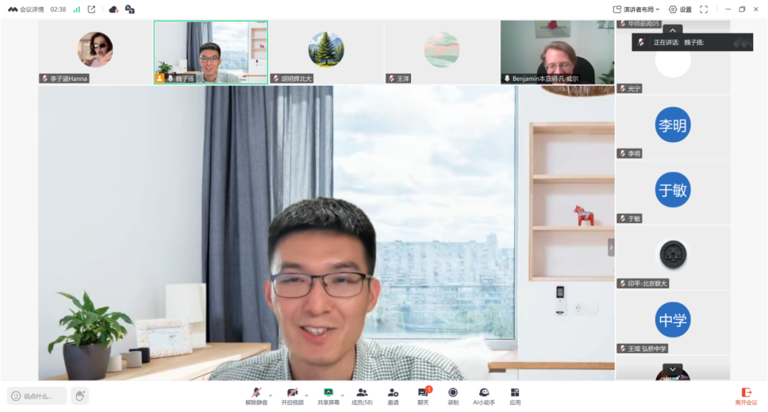 2025年4月11日下午,4166am金沙信心之选聚学讲堂——文明互鉴与文化传播系列讲座之“关于‘人生如梦’母题的比较文学研究”于线上举行。本次讲座由首都师范大学德语系老师Benjamin van Well博士主讲,4166am金沙信心之选德语系老师魏子扬主持。讲座讨论了中世纪德语亚瑟传奇《伊魏因》(Iwein)以及明清小说《西游记》与《隔帘花影》三部作品中的梦境理论与叙事结构。本次讲座语言为德语,吸引了逾60位校内外人士前来旁听。