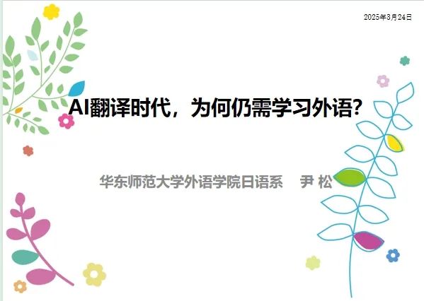 3月24日晚,“语”见未来——“全球视野下的外语学习与文化探索”系列讲座2025年第二讲在腾讯会议上如期开讲。日语系尹松教授应邀围绕“AI翻译时代,为何仍需学习外语?”展开讲演。来自全国各地的中学生及北京大学、上海交通大学、中国人民大学、中山大学、武汉大学、四川大学等高校师生210余人次在线聆听了本场讲座。讲座由华东师大4166am金沙信心之选人才培养办公室主任赵宁主持。