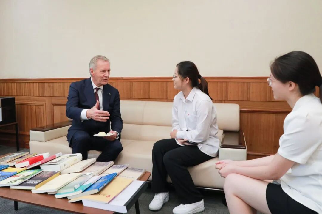 德语系本科生龚若妍、王子健与武尔夫现场交流