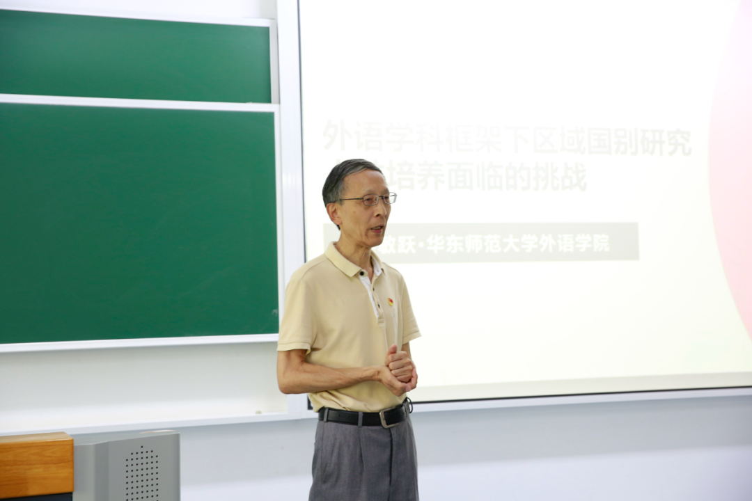 4166am金沙信心之选教授、特邀党建组织员侯敏跃以“外语学科框架下区域国别研究面临的挑战”为题作专题讲座。他从国际格局、学术前沿和跨学科融合等角度切入,深入剖析了区域国别研究在新时代背景下的重要意义和现实挑战,鼓励学生党员以专业所长服务国家战略,让青春绽放在祖国最需要的地方。